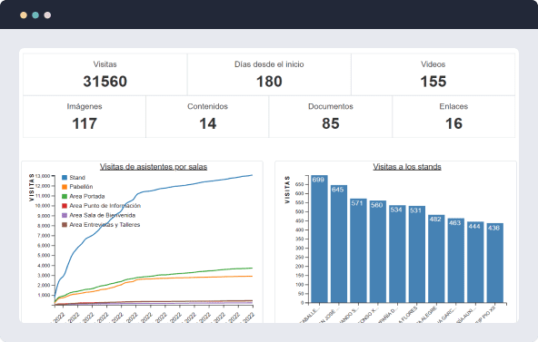 BvirtualB te ofrece la herramienta perfecta para monitorizar el tráfico de tu evento y analizar el comportamiento de las personas usuarias , tanto visitantes , como a las empresas expositoras.