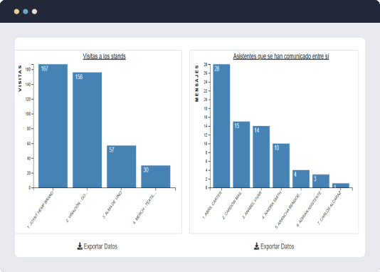 Mediante procesos de seguimiento digital, podemos saber cuáles han sido los stands más visitados, los tiempos medios de permanencia, el tipo de interacción que ha generado cada área de la feria, etc. En BvirtualB ponemos a tu disposición las técnicas de marketing más avanzadas, para obtener estadísticas fiables acerca de tus eventos de empresa.